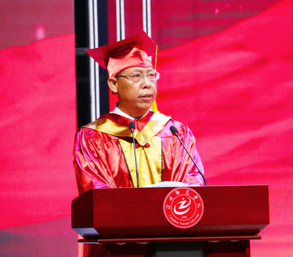 菡萏飘香,骊歌悠扬。此时此刻,望着同学们一双双憧憬未来的眼睛,我仿佛又回到当年送孩子远行读书的情景,那是每一位为人父母都饱尝过得滋味,既留恋不舍,又祝福期待。我来师院两月,未曾伴你们度过美好的求学时光,但细看你们稚气的笑脸,听闻你们四年来勤奋进取的历程,你们为师院赢得的每一项荣誉,贡献得每一份聪明才智,都令我倍感振奋、骄傲自豪!今天,我们齐聚一堂,请允许我为你们献上一份特别的“壮行礼”,共同见证8040威尼斯最佳登录2019届毕业生的欣喜与荣耀!在此,我谨代表全校教职员工,对3689名同学圆满完成学业、开启人生新征程表示最热烈的祝贺!向为你们成长成才付出心血汗水的师长、亲友表示诚挚的感谢和崇高的敬意!