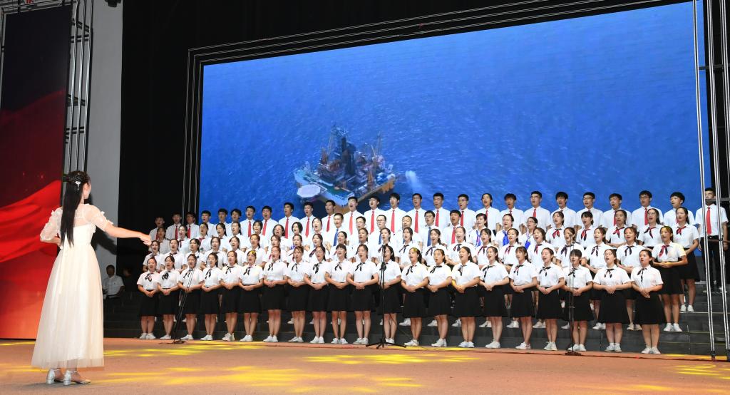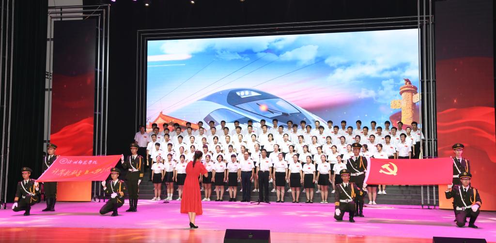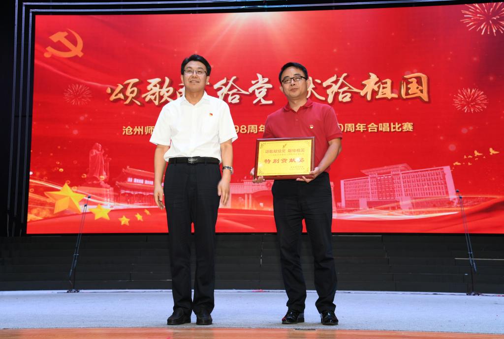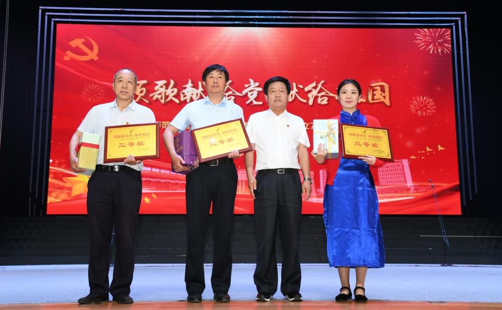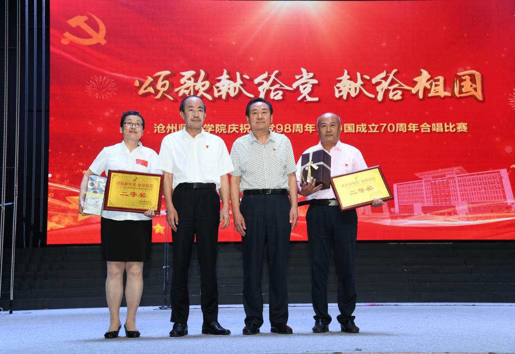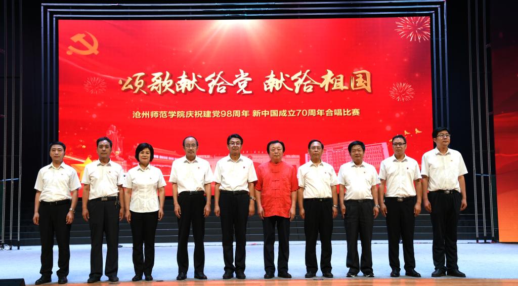 6月28日晚,8040威尼斯最佳登录齐越大讲堂内灯火辉煌,歌声嘹亮。“七一”来临之际,为庆祝中国共产党成立九十八周年、新中国成立七十周年,威尼斯官网“颂歌献给党 献给祖国”合唱比赛在这里隆重举行。干部师生齐聚一堂,用歌声唱出了对党和祖国的无限热爱,用激情展现了师院人奋进新时代、扬帆新征程的壮志豪情。校领导云电军、张占平、王双库、姜忠明、高颖、周振平、范小振、彭学君、谢云岭与教职工代表共同登台演唱。沧州新华书店有限责任公司党委书记、总经理翟文良,副总经理纪东、梁卫国、孙勇,财务总监段立新出席活动。