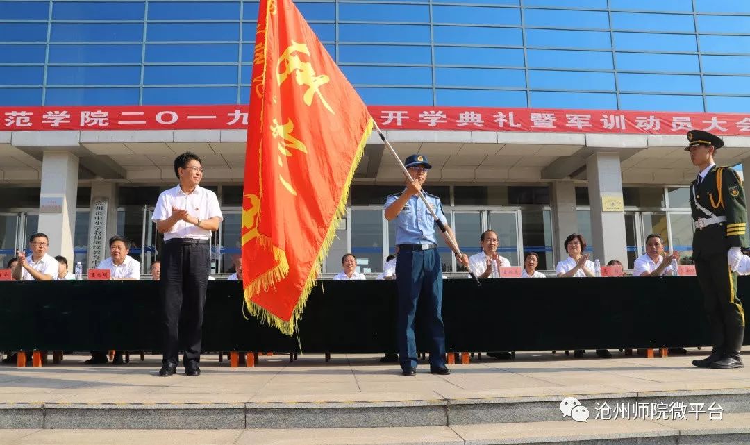 党委书记、军训领导小组组长云电军为军训团授旗