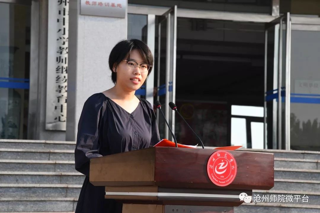 生命科学学院2016级学生赵旭东、文学院2019级学生王奕丹和马克思主义学院教师佟立荣分别代表在校生、2019级新生和教师发言。