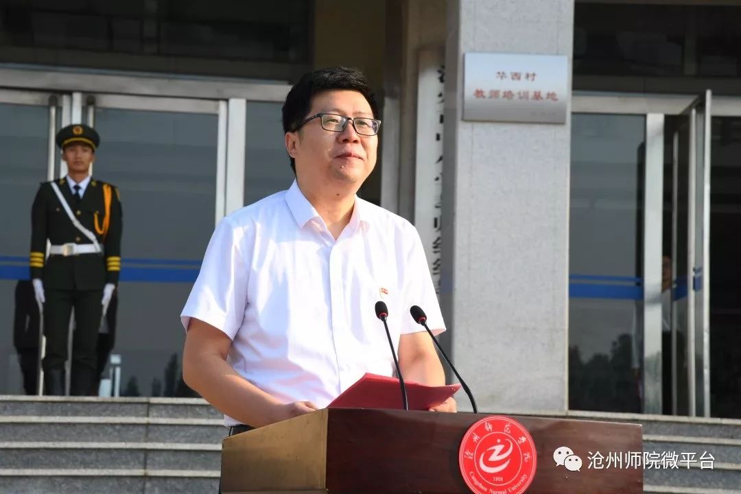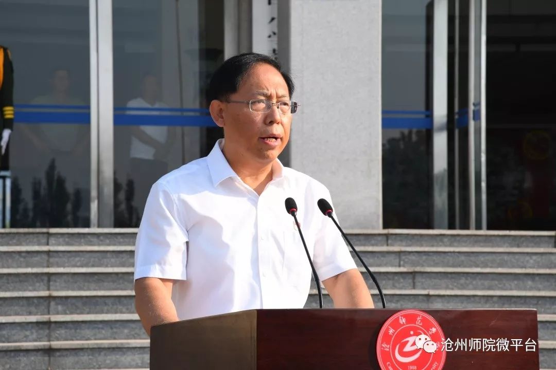 校长张占平以《谱写励志旋律 唱响青春之歌》为题发表讲话。在向新生介绍了沧州的历史和威尼斯官网在近些年的发展中取得的成绩之后,张占平鼓励2019级新生通过唱好“三支歌”来努力奋斗,追寻梦想。第一支歌是“谁不说咱家乡好”。张占平指出,家乡是缩小的祖国,祖国是放大的家乡。今天,你们拥有了一个新家——沧州师院,也有了一个新身份——沧州师院人。学校以其拼搏奋进的精神和永远向上的姿态,引领着你们这些雏鹰向上攀飞。希望大家能够爱护作为我们共同的第二故乡的沧州师院,牢固树立社会主义核心价值观,秉承“明德 博学 知行 日新”的校训,汲取师院力量,将人生理想和师院精神贯彻到国家和民族的事业中,无论何时何地,做到爱国荣校,为母校增光,为祖国添彩。第二支歌是“敢问路在何方”。张占平指出,大学生涯好比《西游记》中唐僧师徒西天取经的漫漫征途,四度春秋,酸甜苦辣,怀着坚定的信念,一步一个脚印迈向成功大道。因此,作为求取“大学真经”的“行者”,既要有“少年心事当拿云”的气魄,也要有“积跬步致千里,积小流成江海”的踏实。习近平总书记说“青年有着大好机遇,关键是要迈稳步子、夯实根基、久久为功。” 学会比别人多努力一点,学着比别人多拼搏一把,让勇敢奔跑的英姿填满青春路程。第三支歌是“国际歌”。张占平指出,大学是师生共治的学术共同体,教学相长是其显著特征,不再有人拿着小木棍儿追在你屁股后面,督促你学习,相反需要你积极思考和主动参与。正如《国际歌》中唱的那样“从来就没有什么救世主,也不靠神仙皇帝,要创造人类的幸福,全靠我们自己。” 希望你们学会做大学生涯的主人,调好“当家作主”的琴弦,拧好“自我管理”的螺丝。合理安排学习生活时间,做好个人发展规划,自我调节、自我约束,将大学生活布置得更有色彩;养成每天阅读的好习惯学会结伴而行、团结协作,克服弱点和不足,增强科研意识、创新意识,为今后的发展研究奠定基础。