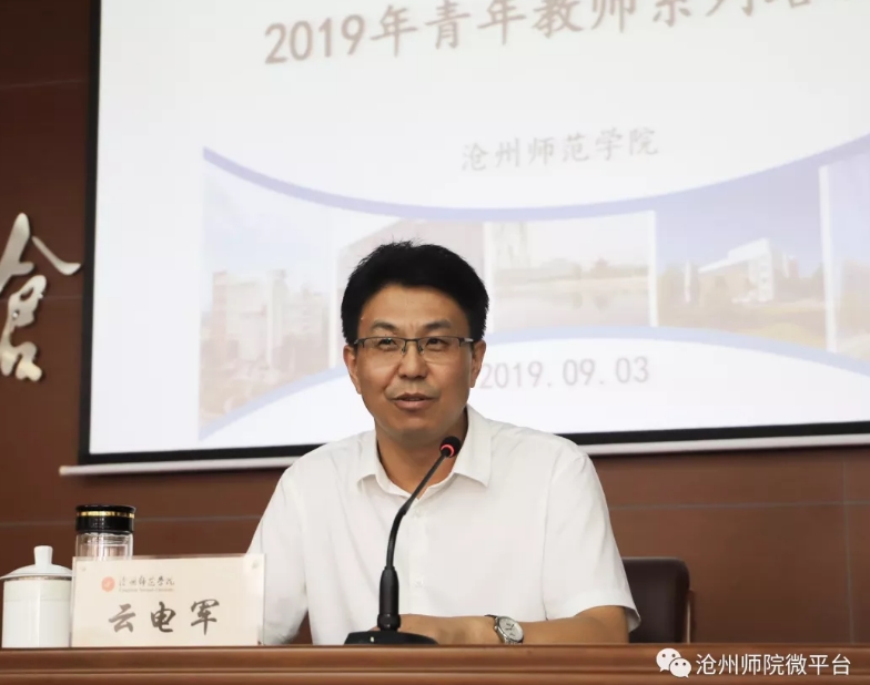 云电军在讲话中对威尼斯官网2018和2019年新入职的青年教师表示欢迎,指出,本次岗前培训既体现了学校党委对新入职教师的关心,也是学校充分重视学校师资队伍建设的一项重要举措。