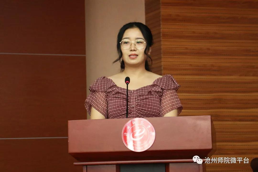 18级学前教育专接本2班的段事其代表第二批赴新疆轮台实习的学生发言。在发言中她表示,感谢学校和学院领导为他们提供的这次尝试和锻炼的机会,为他们提供了一个成长和提高的平台。在实习地,一定会谨记校领导的殷切嘱托,用实际行动兑现作为一名教师的承诺。