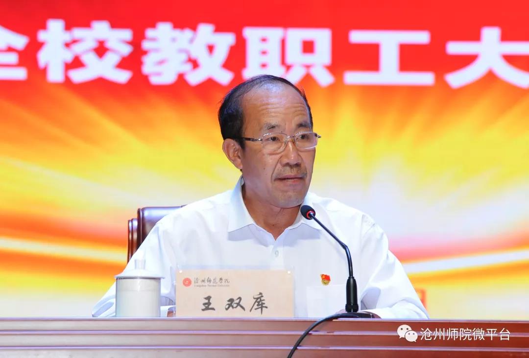 校长张占平在回顾工作时指出,上学期,学校以习近平新时代中国特色社会主义思想为指导,认真学习贯彻落实全国全省教育大会精神,胜利召开第二次党代会,成立了新一届党委班子,明确了学校未来五年发展目标,提出了具体举措要求。张占平对新学期的工作进行了部署,他指出,在第二次党代会精神指引下,学校坚持党的全面领导,大力推进教育教学改革,深化校园内涵建设,提高办学治校水平,全面开启了地方高水平师范类应用型大学建设新征程。本学期要抓好落实七个方面20项工作:一是以习近平新时代中国特色社会主义思想为指导,全面提升党的建设水平。二是以文化为引领,全面提升思想政治工作水平。三是以教学为中心,全面提高教育教学质量。四是以高质量成果为目标,全面提高学校科研水平。五是以学生为根本,全面提升学生教育管理服务水平。六是以服务教学为宗旨,全面提升服务保障能力。七是以安全稳定为首要责任,全面构建和谐平安校园。