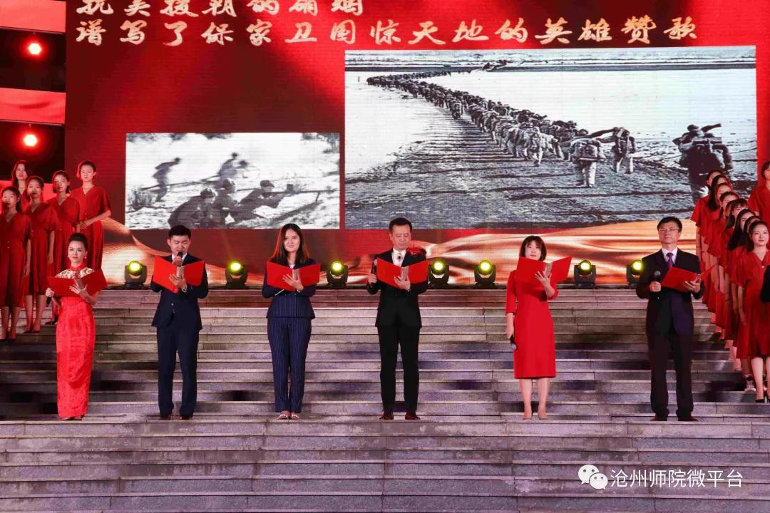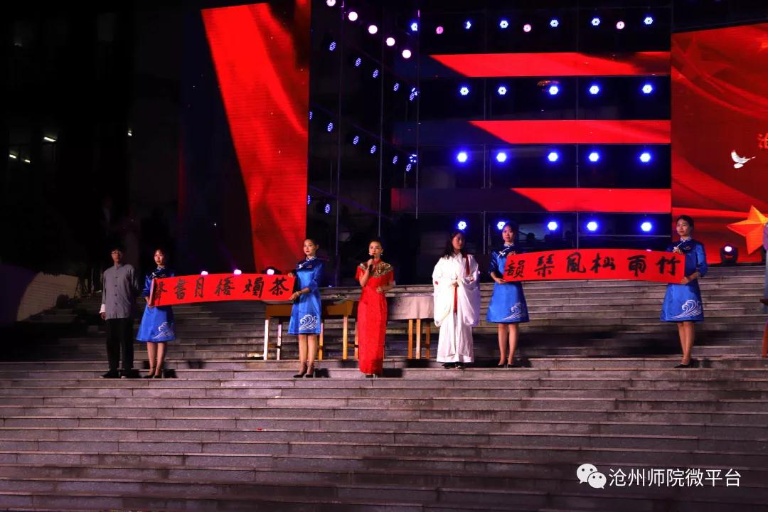 校领导云电军、王双库、姜忠明、高颖、周振平、范小振、彭学君、谢云岭,中共沧州市委宣传部副调研员李芬,中共沧州市委宣传部文明办综合协调科科长李兵出席晚会。