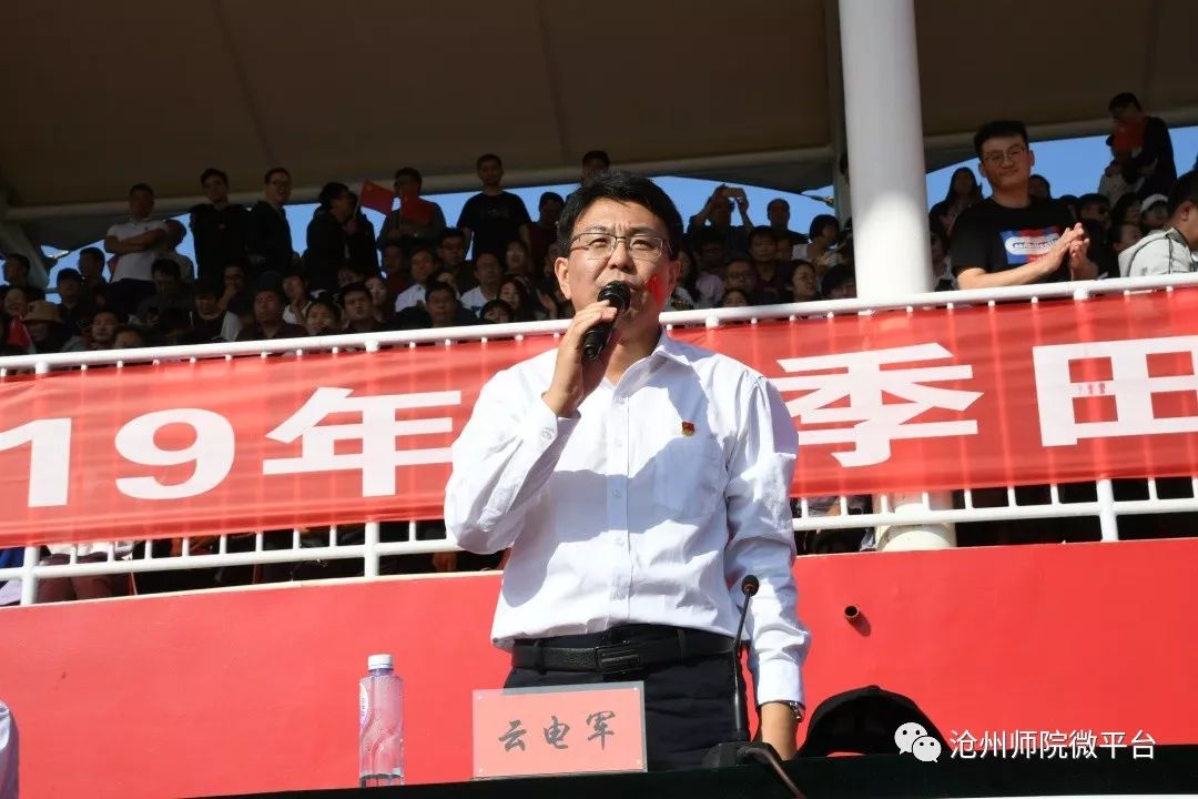 9月26日上午,威尼斯官网操场锣鼓喧天,人声鼎沸,校运动会正式开幕。校领导云电军、王双库、姜忠明、高颖、周振平、范小振、彭学君、谢云岭出席开幕式。
