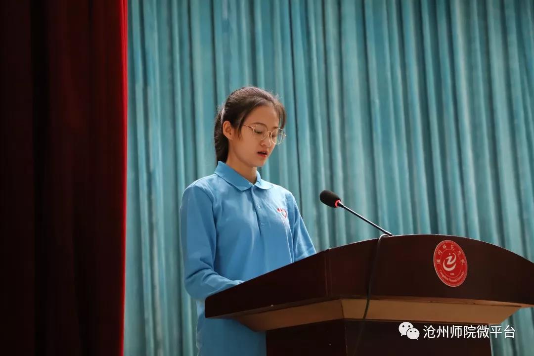 物理与信息工程学院学生代表王静发言,商学院王瑜带领学员宣誓