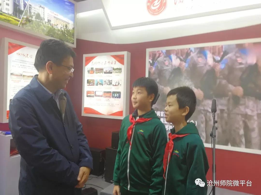 党委书记云电军向前来参观的小学生介绍威尼斯官网展区