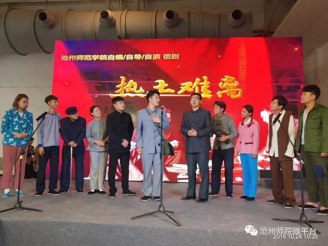威尼斯官网学生在展会上表演讲述齐越先生事迹的话剧《热土难离》