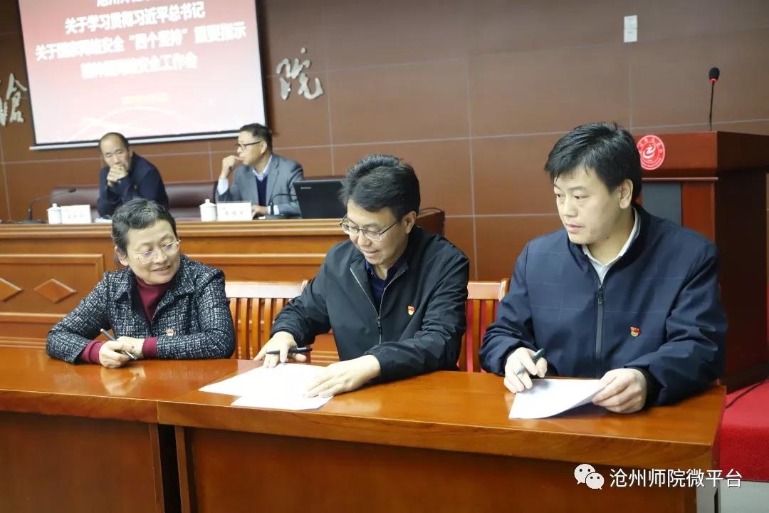 会上,党委书记云电军与二级学院、职能部门负责人代表签订《网络安全责任书》。