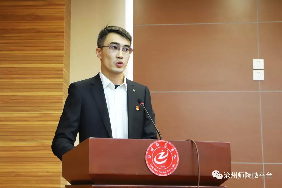 经济管理学院李志豪作为辅导员代表发言,表达了做好辅导员工作的信心、决心。