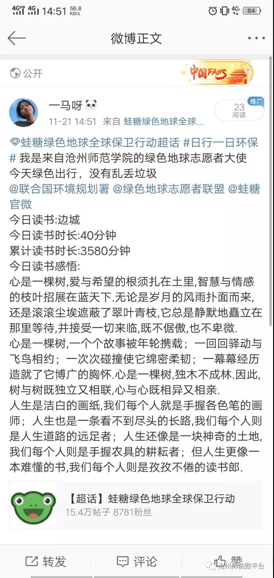关爱绿色地球 创建美丽校园——师院学子在行动