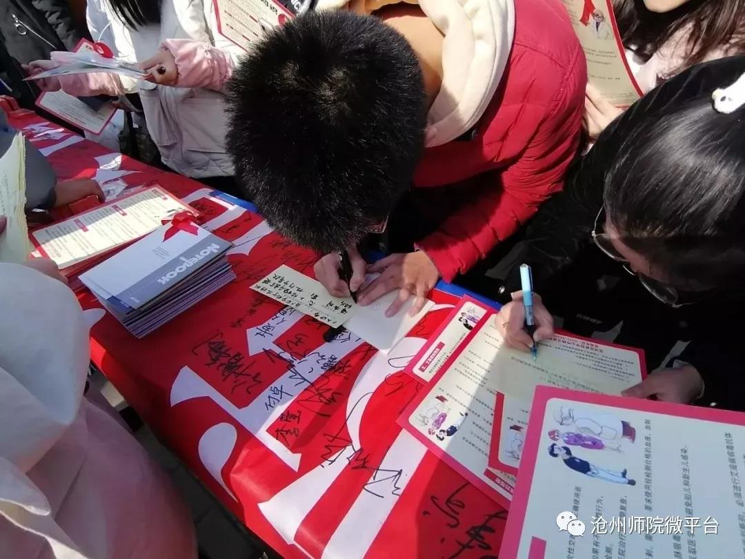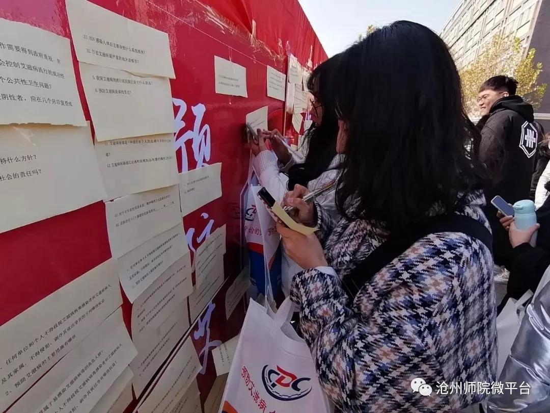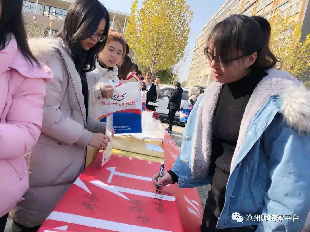 第32个艾滋病宣传日来临之际,威尼斯官网教育学院团总支学生会、青年志愿者协会、风行辩论社联合沧州市疾病预防控制中心在文科楼前小广场共同举行了“防治艾滋,你我同行”防艾宣传活动。