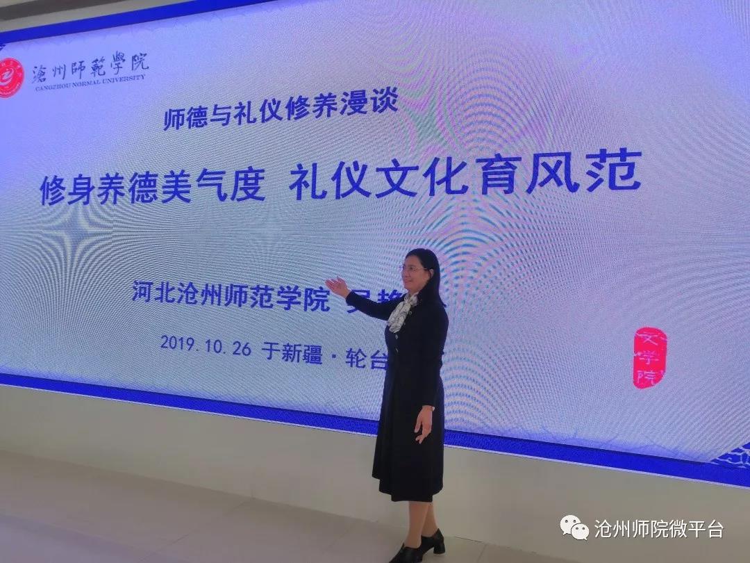 临行前的几天,吴艳华受轮台之邀,在三小和三中连续开展了两场“修身养德美气度,礼仪文化育风范”师德师仪专题培训。她连续加班加点,推敲修改论点论据、精益求精制作每张课件,终于又站在了熟悉的讲堂上,生动地讲解、实用的知识,为轮台师生送去了文化与视听的双重享受。
