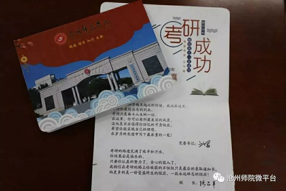 感谢云书记、张校长对于我们考研同学的关爱。校领导的祝福语正如冬日的暖阳温暖我们心扉。同时也感恩文学院老师们对我们的细心呵护,这一切让我们深切感受到了师院的大爱。考研是一条艰苦之路,这一路上充满着艰辛和苦楚,学院里为我们提供了专用的复习教室,领导和老师都给予了我们莫大的帮助!今天学院里又为我们准备了考研大礼包,在孔书记的手里接过礼品时,我内心真的十分激动!我一定会以十分的努力来回报领导和老师。