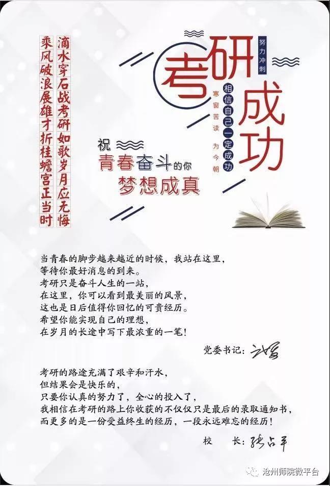 “每一个不曾起舞的日子,都是对生命的辜负”硕士研究生考试将近,校党委书记云电军,校长张占平近日温暖寄语威尼斯官网广大考研学子:
