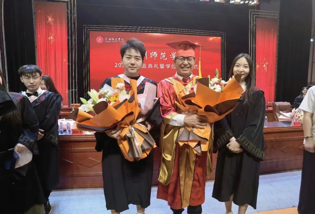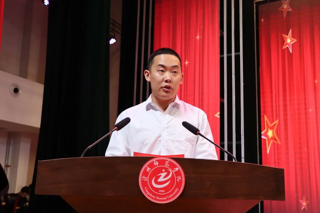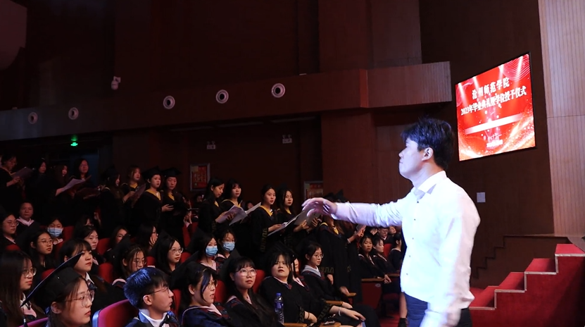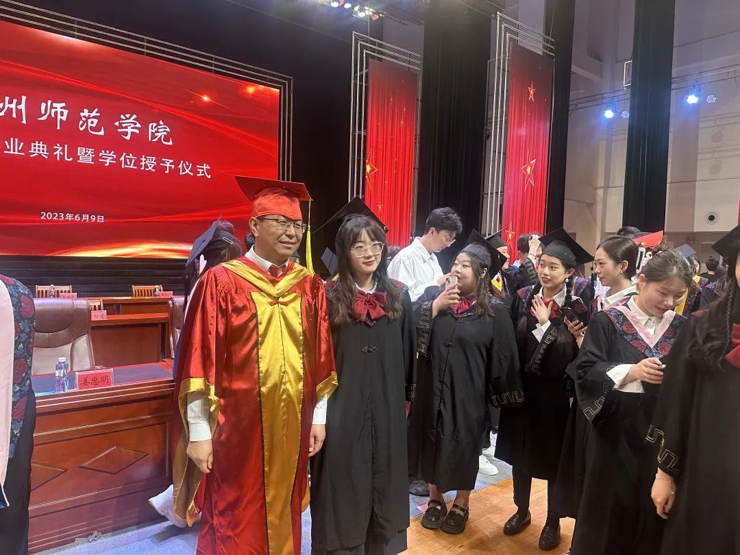 教师代表郑寿存鼓励毕业学子,努力成为大爱相传的新时代青年,带着师院人的温暖、包容与情怀,把师院大爱播撒在祖国大地上,用青春之智、青春之力接力新时代“师院人”的大爱新篇章。
