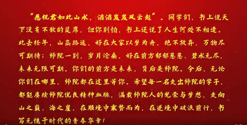 教师代表真情祝福毕业学子 再祝前程辉煌