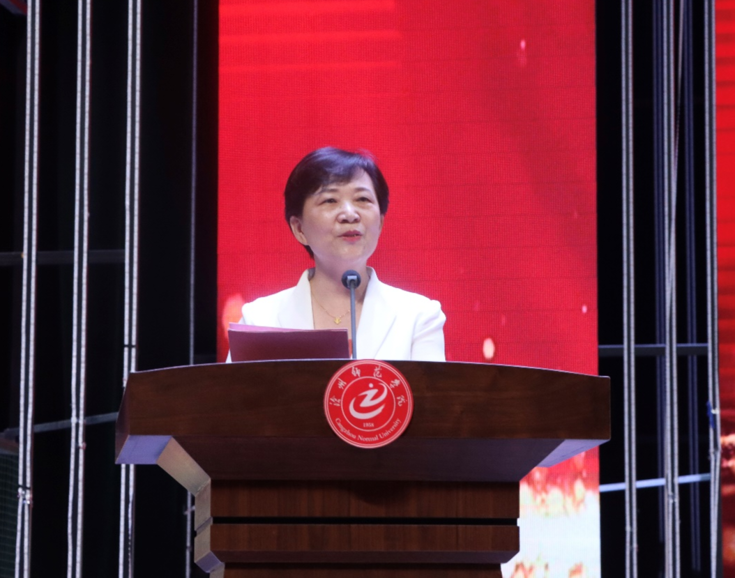 教师代表、教育学院刘冬梅,毕业生家长代表齐月花,毕业生代表史家畅,在校生代表、2019级五年制公费师范生王琳琳分别发言。