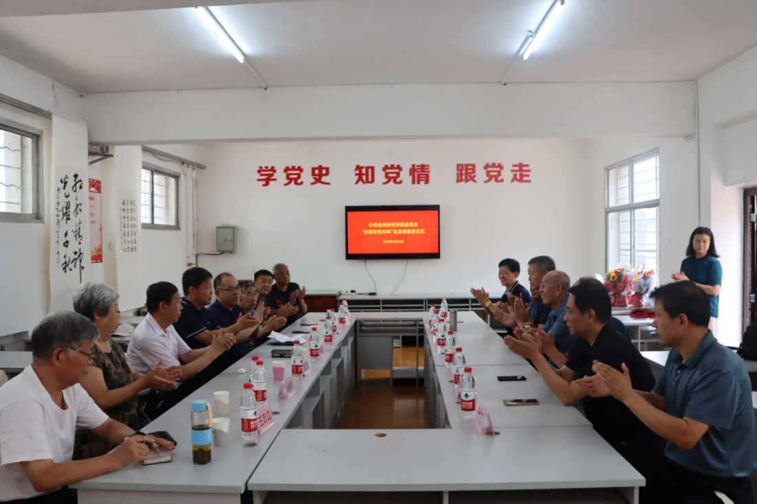 纪念章颁发仪式和座谈会由组织部长刘海玉主持,老干部处、退休教工支部代表参加活动。