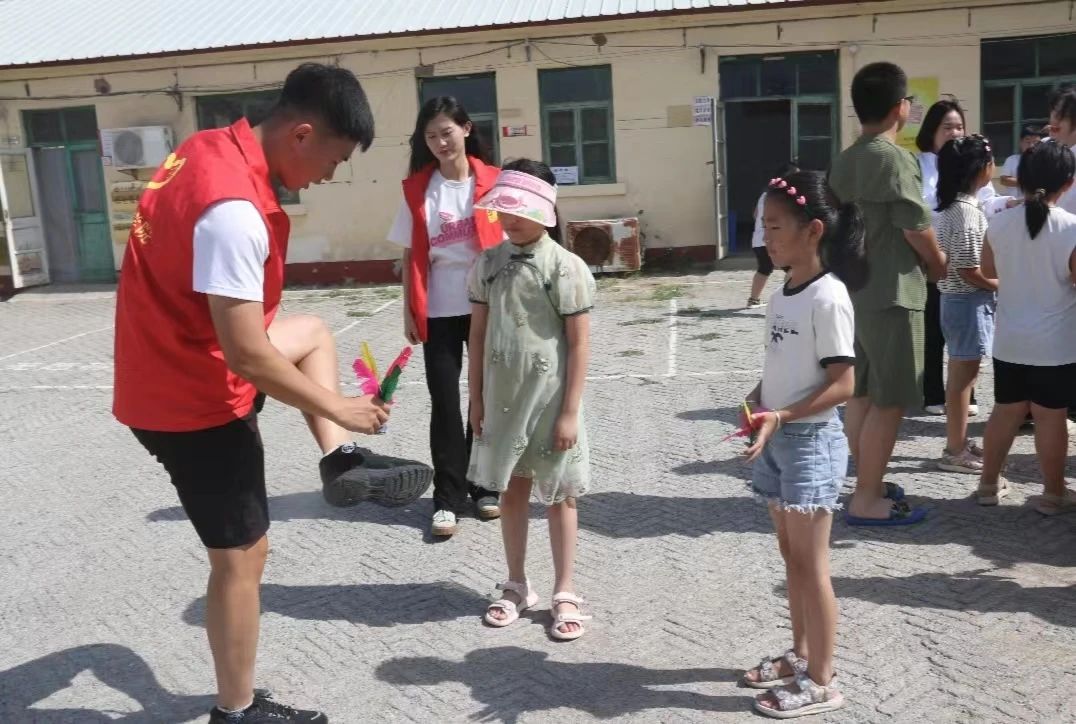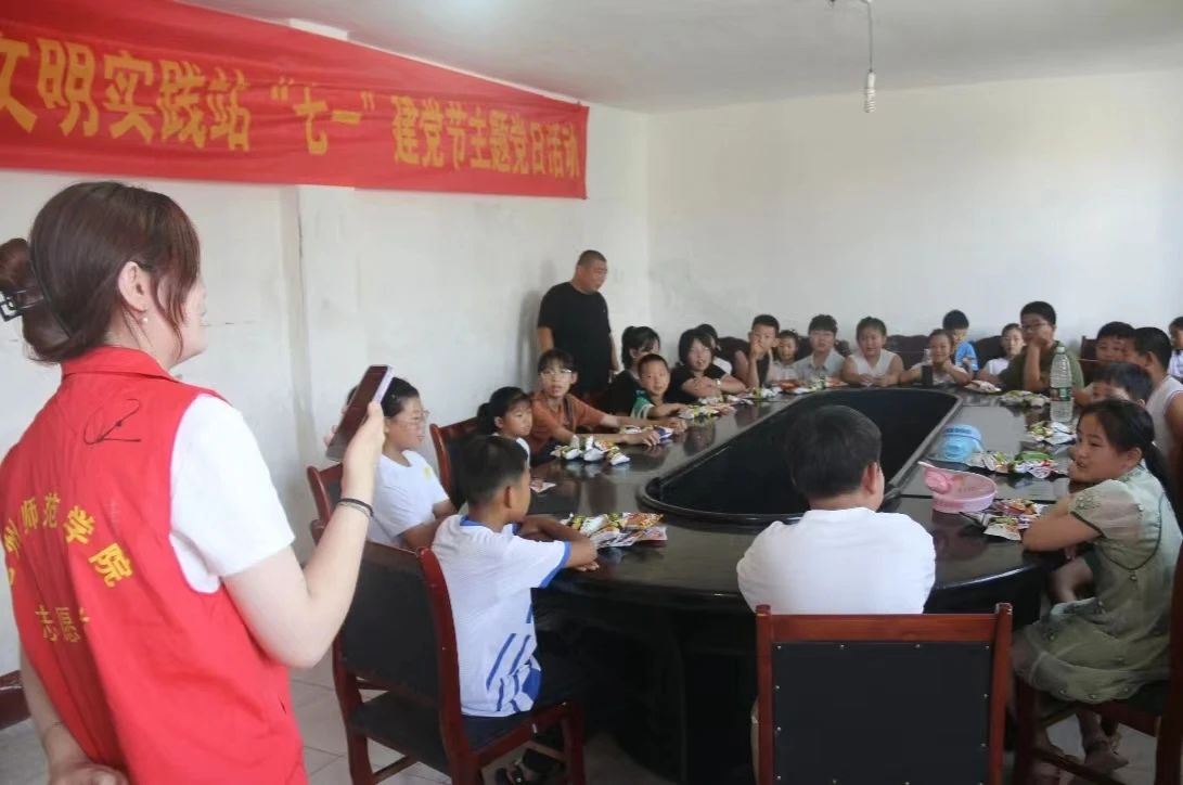 7月1日上午,为庆祝中国共产党成立102周年,经济管理学院党总支、体育学院党总支、数学与统计学院党总支、图书馆党支部组成联合志愿服务队,到威尼斯官网包联村张庄子新时代文明实践站开展“七一”建党节主题党日活动。志愿者们为该村儿童发放零食、毽子、沙包等慰问品,带领孩子们讲红色故事、唱红歌、做运动,以多种形式向伟大的中国共产党致以诚挚的祝福和敬意。
