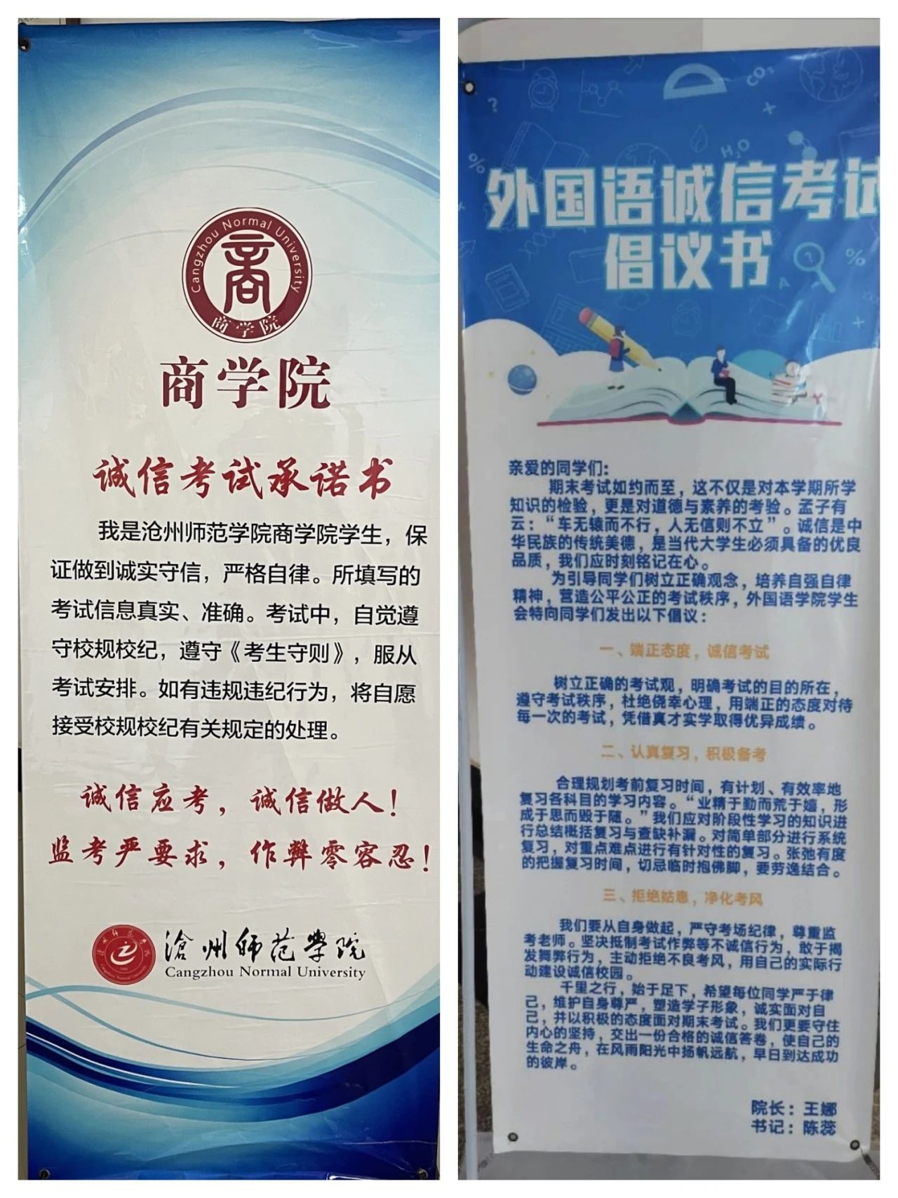 期末考试对于大学生来讲,不仅是一个学期以来学习成果的大检测,更是一场道德品质的试炼与评估。自6月份中旬威尼斯官网进入期末复习以来,为营造风清气正的考试氛围和诚实守信的校园环境,在学校组织倡导下,各学院先后召开期末诚信考试动员会,积极开展考风考纪主题教育,加强诚信应考、申报无人监考考场的宣传。教室、图书馆学习氛围浓郁。
