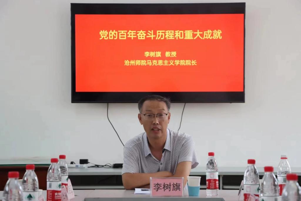 李树旗以救国、兴国、富国和强国为讲解主线,深入剖析了中华民族从东亚病夫到站起来、富起来、强起来的三次伟大飞跃,层层推进介绍了中国共产党100年来的辉煌历程及成就。他强调全面回顾党的百年奋斗历程和重大成就,有助于深刻领悟“两个确立”的决定性意义,在百余年奋斗历程中,我们党始终高度重视领导核心和科学理论在推动历史前进中的重大作用。我们党之所以能够历经艰难困苦而不断壮大,取得革命、建设、改革的伟大胜利和辉煌成就,很重要的历史经验就是确立和维护坚强领导核心,坚持科学理论指导。这是党的历史带给我们的深刻启示。