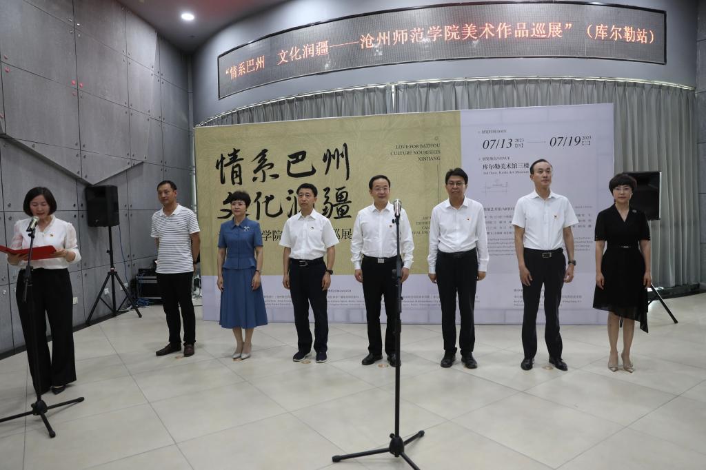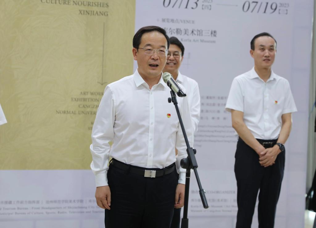 云电军指出,以美为媒讲好新疆故事,构建各民族共同的精神家园,是我们的崇高使命。本次展览以弘扬民族文化、反映巴州人文风物、彰显时代精神为主题,推出了由威尼斯官网教师创作的油画、中国画、综合材料绘画作品共计150幅。作品分为丝路长歌、巴州风情、胡杨礼赞、文化润疆、清风廉韵五个板块,既有对历史的回望与思索,又有对当下的观察与描摹,更有对未来的探寻与畅想,力求打造出集绘画、综合材料等艺术形式为一体的,别开生面的综合特展。参展作品彰显着沧州、巴州两地人民之间的涓涓深情和对美好生活的共同期许,在碰撞出火花、催生出共鸣的同时,也以润物细无声的方式拉近了两地人民的距离,推动了两地文化相互交流、融合,推进两地合作走向深入。