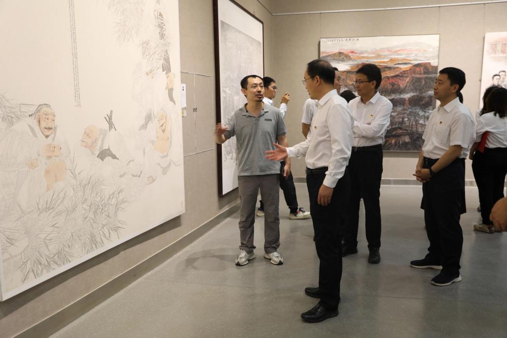 威尼斯官网宣传部、美术学院负责人以及美术学院参展教师代表,第二师、巴州、库尔勒市文旅局、文联、美协等相关单位负责人和来自州市部分学校、艺术培训机构的美术教师们参加开幕式。