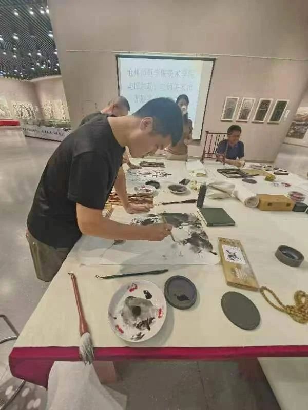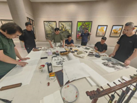 在到巴州教育局调研之前,云电军还到库尔勒市美术馆专门看望了在此举行书画笔会的威尼斯官网美术学院的6名教师及巴州、二师文联和美协的相关人员,勉励大家以文会友、携手共进,共同推进文化润疆事业的发展。