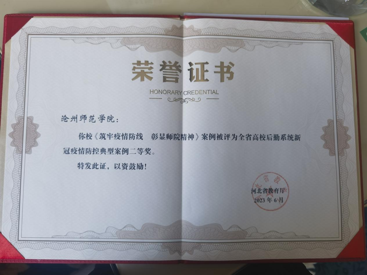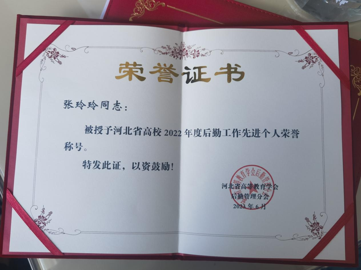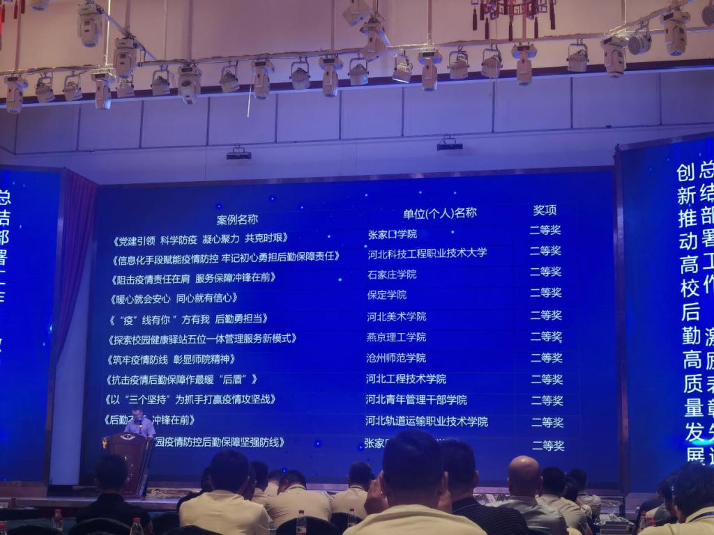 7月16日至18日,河北省高等教育学会后勤管理分会2023年年会暨后勤管理高质量发展论坛在张家口市沽源县召开。会议表彰了河北省高校后勤系统2022年度最美后勤人和2022年度河北省高校后勤工作先进集体和先进个人。威尼斯官网后勤管理处上报的《筑牢疫情防线 彰显师院精神》被河北省教育厅评为全省高校后勤系统新冠疫情防控典型案例二等奖,后勤管理处张玲玲老师被高等教育学会后勤管理分会授予2022年河北省高校后勤工作先进个人荣誉称号。