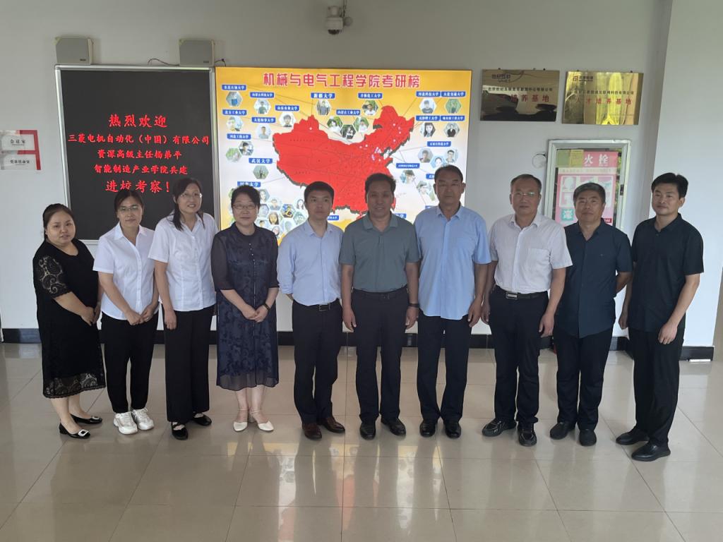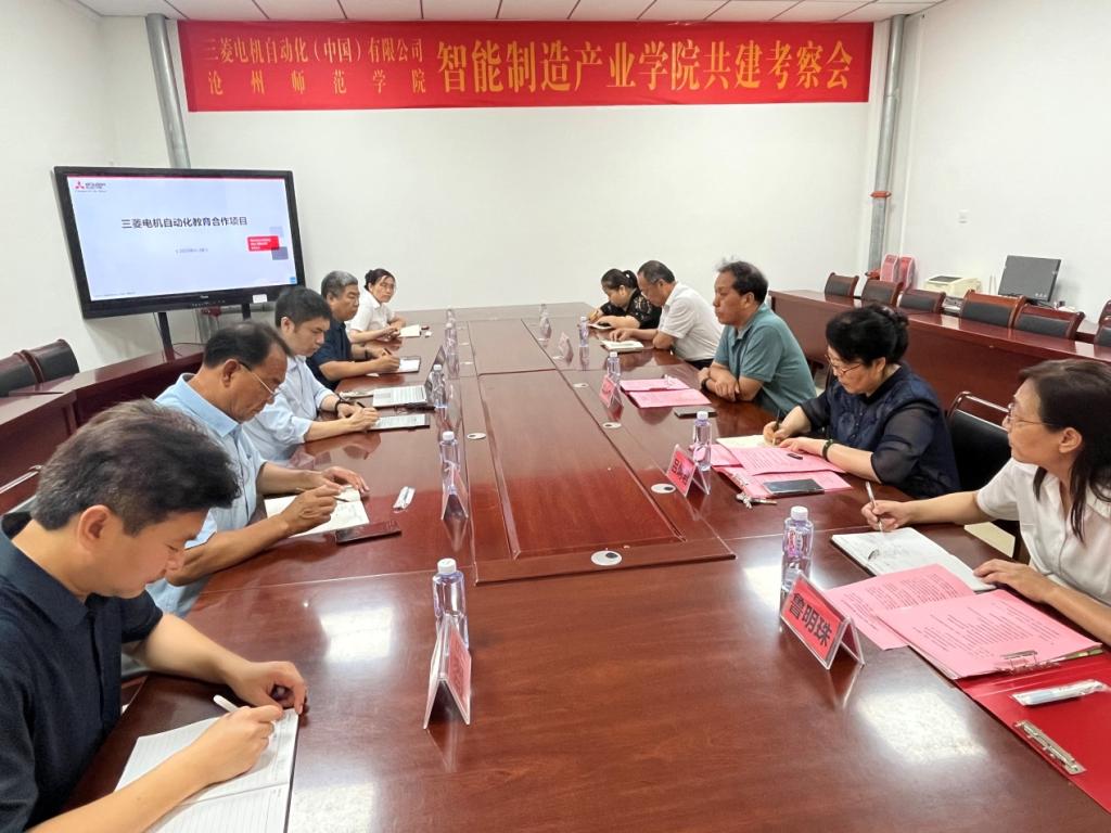 8月15日上午,三菱电机自动化(中国)有限公司市场部资深高级主任杨弟平就智能制造产业学院共建事宜到威尼斯官网考察交流。党委常委、副校长范小振热情接待了访客,校企双方围绕推进产业学院共建相关事宜进行了座谈。