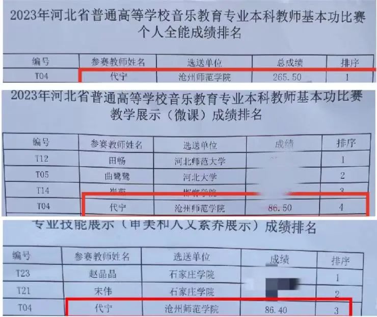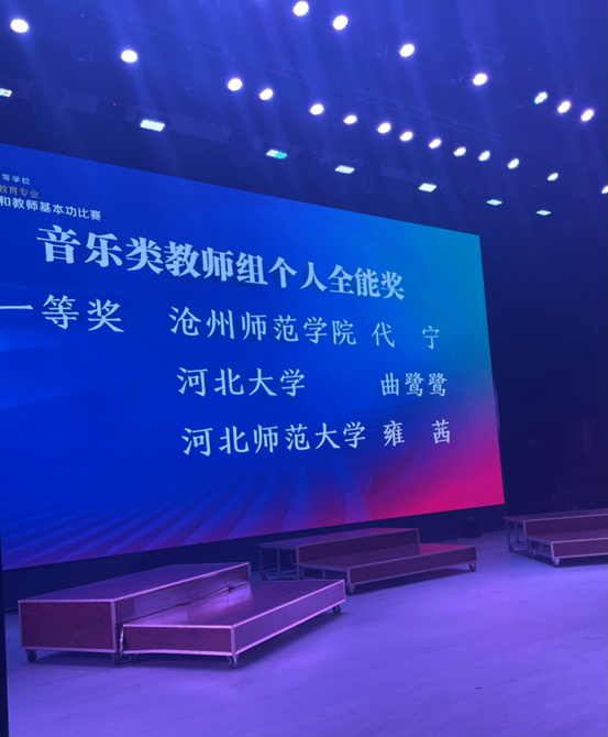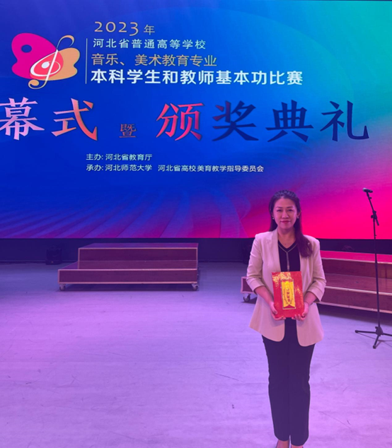 2023年获得河北省普通高等学校音乐、美术教育专业本科学生和教师基本功比赛(音乐类教师组)个人全能奖一等奖、教学展示单项奖、审美和人文素养展示单项奖等三个奖项
