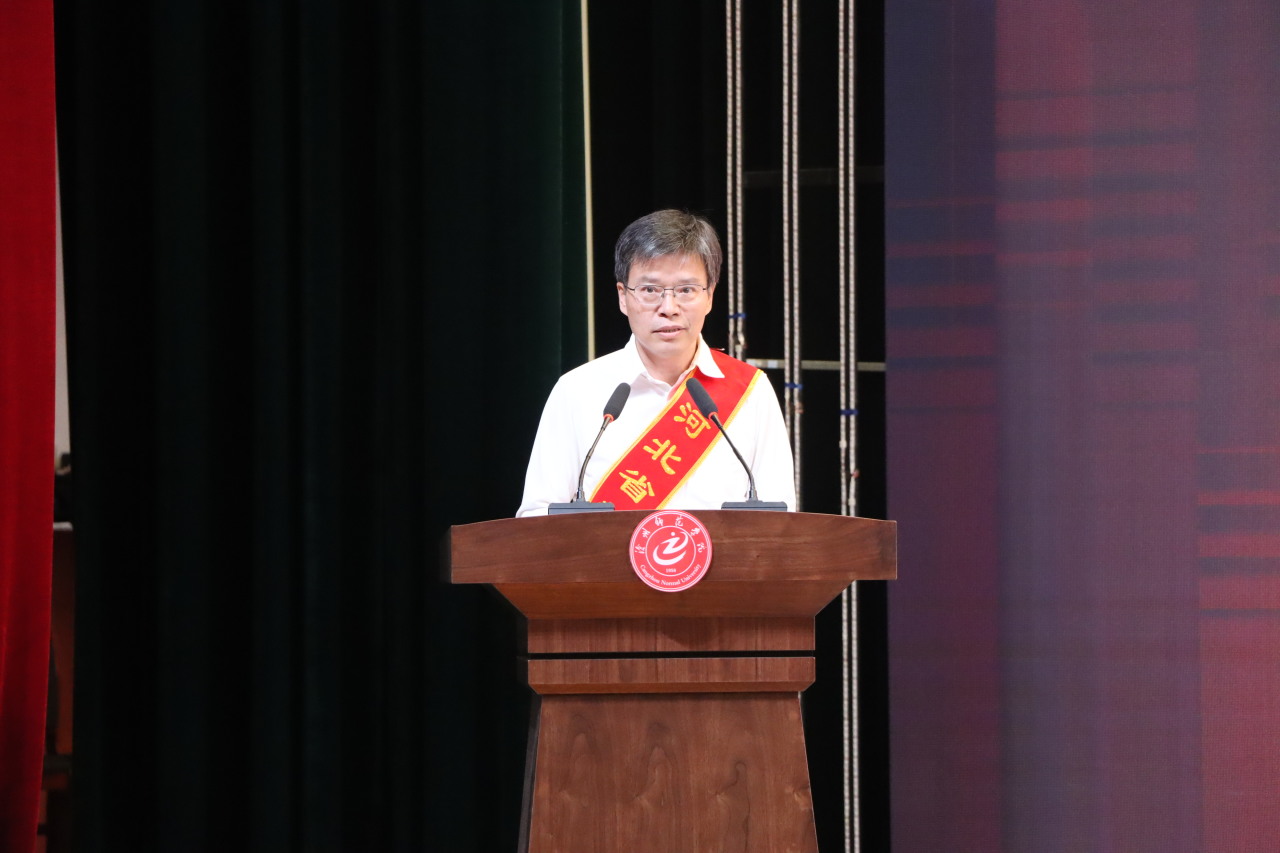 河北省高等学校教学名师、经济管理学院院长李建忠,“师院榜样”荣誉称号获得者、生命科学学院青年教师李末,“攻坚克难、担当作为”先进集体荣誉称号集体负责人、教务处处长吕炳君依次发言,分享他们与学校同发展、共命运的精彩故事 。