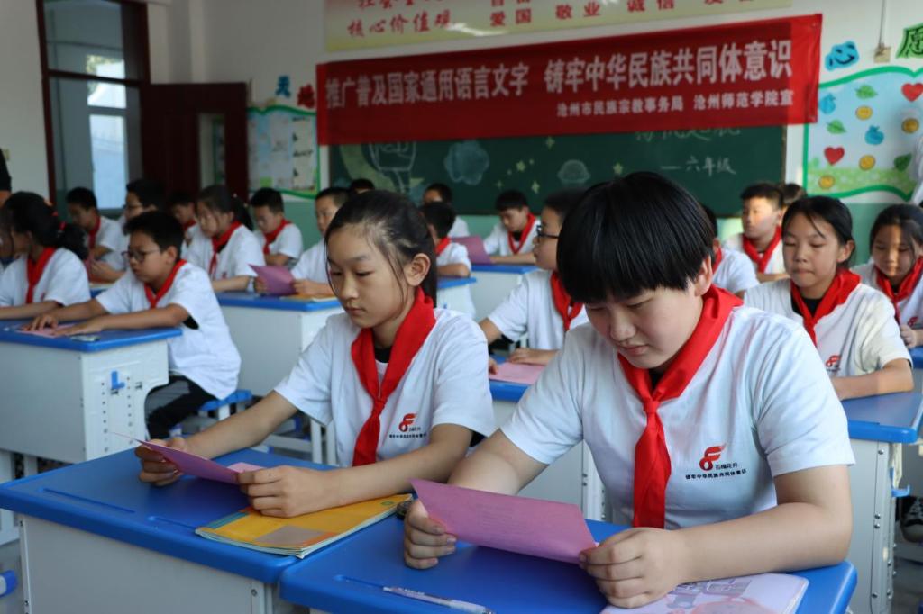 献县教体局副局长张丽珍、献县教体局语委办主任王金英、献县临河乡中心总校校长王培青以及艳明中心学校师生参加活动。