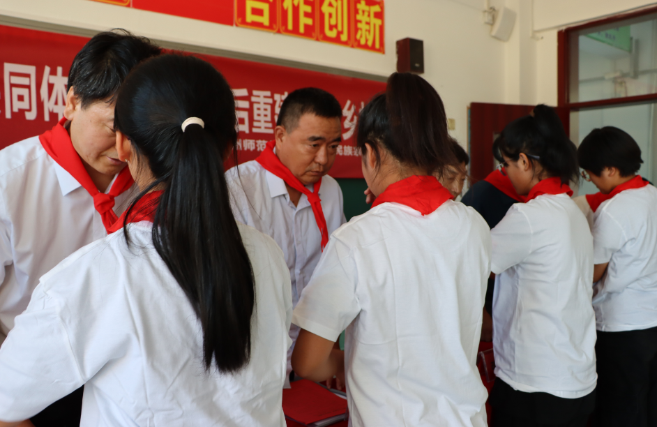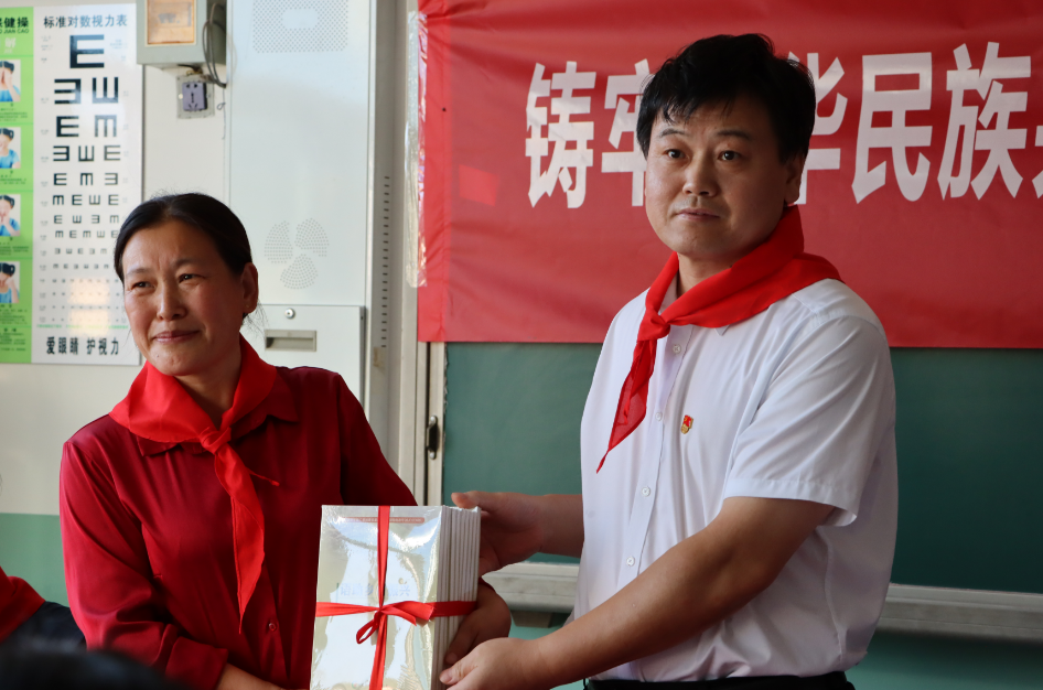 韩希民代表学校将教职工筹集的善款55600元捐给小学,潘治钢赠送了威尼斯官网国家语言文字推广基地成果书籍《语助乡村振兴》,陈秀才代理沧州市民宗局赠送了衣物和生活用品。学生们为威尼斯官网师生系上了红领巾,表达了少年儿童最崇高的敬意和最真挚的感谢。