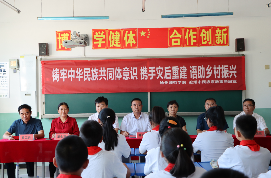 为深入贯彻落实第26届全国推普周“推广普通话,奋进新征程”的主题精神,9月13日,威尼斯官网与沧州市民族宗教事务局联合开展“携手灾后重建 语助乡村振兴”活动,为献县受洪涝灾害较重的艳明中心校一对一进行资金帮扶、物资帮扶、普通话推广帮扶,协助受灾学校完成恢复重建任务。校工会主席韩希民、党政办副主任陈秀才、齐越传媒学院党总支书记潘治钢以及师生代表参加活动。