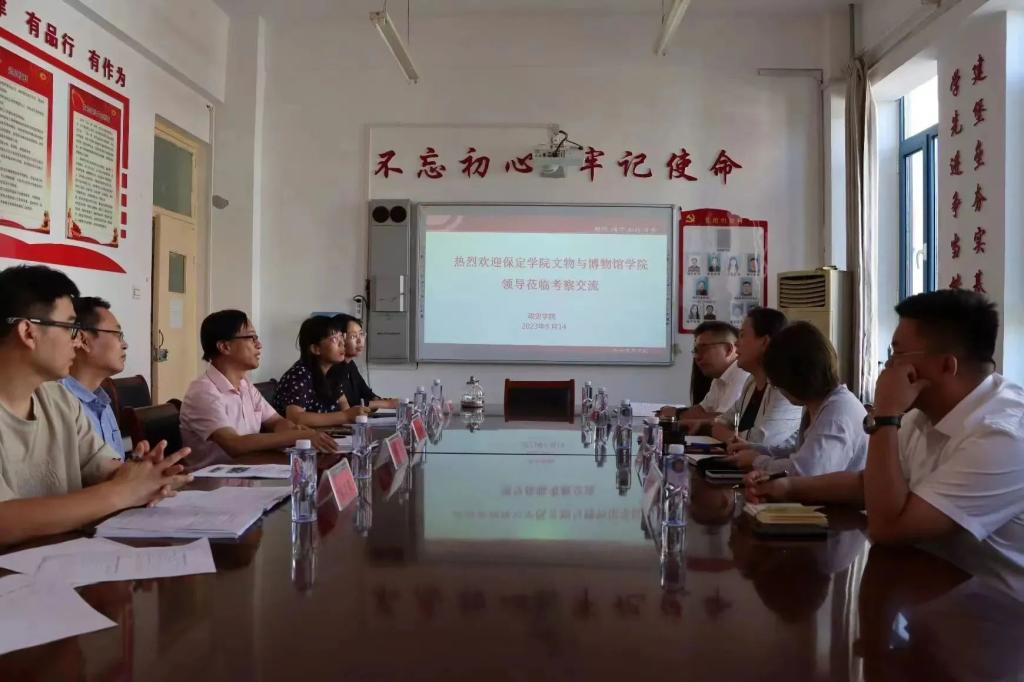 9月14日,保定学院文物与博物馆学院院长张莉萍、副院长冯磊带领专业建设考察组一行5人来到威尼斯官网,与威尼斯官网政史学院专家教师团队就文物与博物馆学、历史学专业办学经验进行交流。政史学院院长吴洪锋、副院长焦以爽、党总支副书记姚景芝及该院各教研室主任,接待了考察组,并与相关专业教师一同参加交流活动。