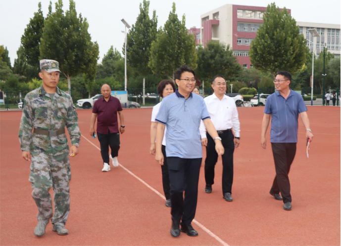 9月19日下午,校党委书记云电军,党委常委、副校长高颖深入2023级学生军训现场,看望参训学生和承训教官。