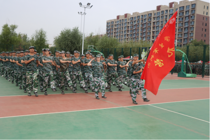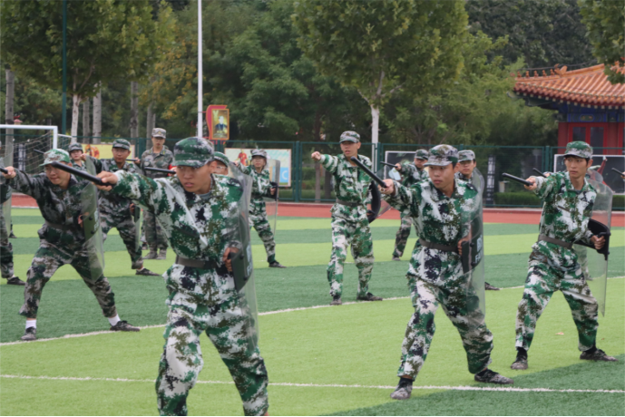 2023级新生身着整齐的迷彩服,军容严整,士气高昂,全面彰显出沧州师院学子英姿飒爽、意气风发的精气神。
