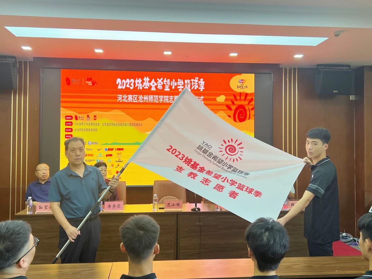 日前,8040威尼斯最佳登录2023年“姚基金希望小学篮球季”支教志愿者出征仪式在体育馆报告厅举行。校党委常委、副校长范小振,姚基金河北赛区项目负责人般若出席活动,教务处、体育学院相关领导参加活动,体育学院院长郑寿存主持活动。