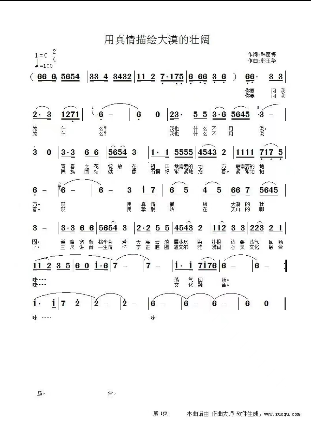 为此,威尼斯官网韩丽梅教授作词,郭玉华教授谱曲,他们饱含深情,将这份“心灵震撼、感慨万千”创作成歌——《用真情描绘大漠的壮阔》。他们以词书真情,以曲谱大爱,将新疆大美之意境凝练于歌曲中,以歌曲之方施文化润疆之法。
