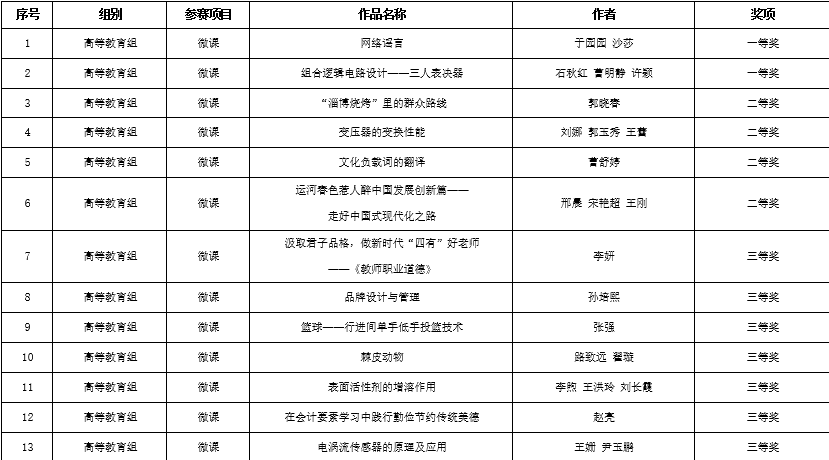 日前,河北省教师教育教学信息化交流活动圆满结束。根据《河北省教育厅关于举办河北省2023年度教师教育教学信息化交流活动的通知》(冀教技术函[2023]11号)文件精神,威尼斯官网报送参赛作品20件,共13件作品获奖,喜获佳绩。其中高等教育微课作品获一等奖2项,二等奖4项,三等奖7项。