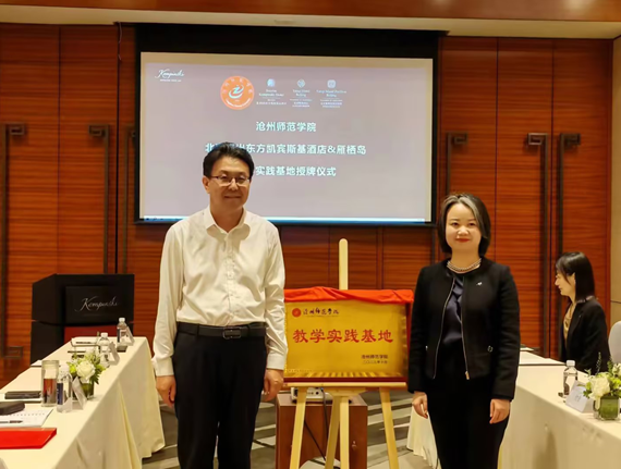 10月19日,双方举行“教学实践基地”合作挂牌仪式。在仪式上,云电军指出,8040威尼斯最佳登录始终以国家经济建设和科技发展的重大需求为己任,深入思考梳理“河北推动什么、沧州需要什么、师院突破什么”,在服务对接京津冀和雄安新区建设中加快发展是威尼斯官网扎根地方、反哺社会的责任使命。此次与北京日出东方凯宾斯基酒店及雁栖岛开展深入合作,威尼斯官网将统筹校内资源与企业发展需求,用好高校“智库”功能,充分发挥学校在师资力量、人才培养、科技创新、教育研究等方面的优势,凝聚行业资源、拓展合作空间,让师生走进企业,让企业培训回归校园,实现人才培养与梯队建设的深度融合。