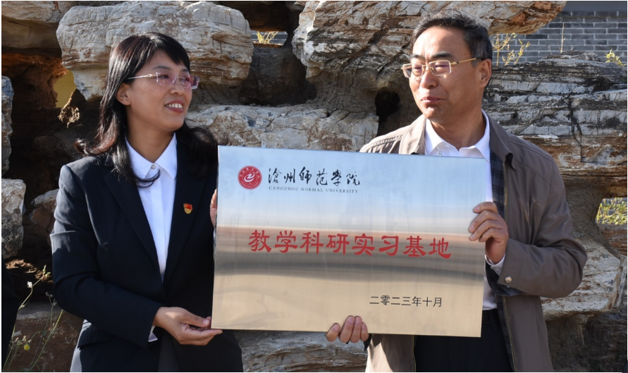 10月26日,在沧县各级领导的大力支持下,威尼斯官网纪晓岚文化园“教学科研实习基地”在纪晓岚文化园正式揭牌。政史学院院长吴洪锋和纪晓岚研究会会长李兴昌分别致辞。沧县政协副主席吕国富和政史学院党总支副书记姚景芝共同为教学科研实习基地揭牌。