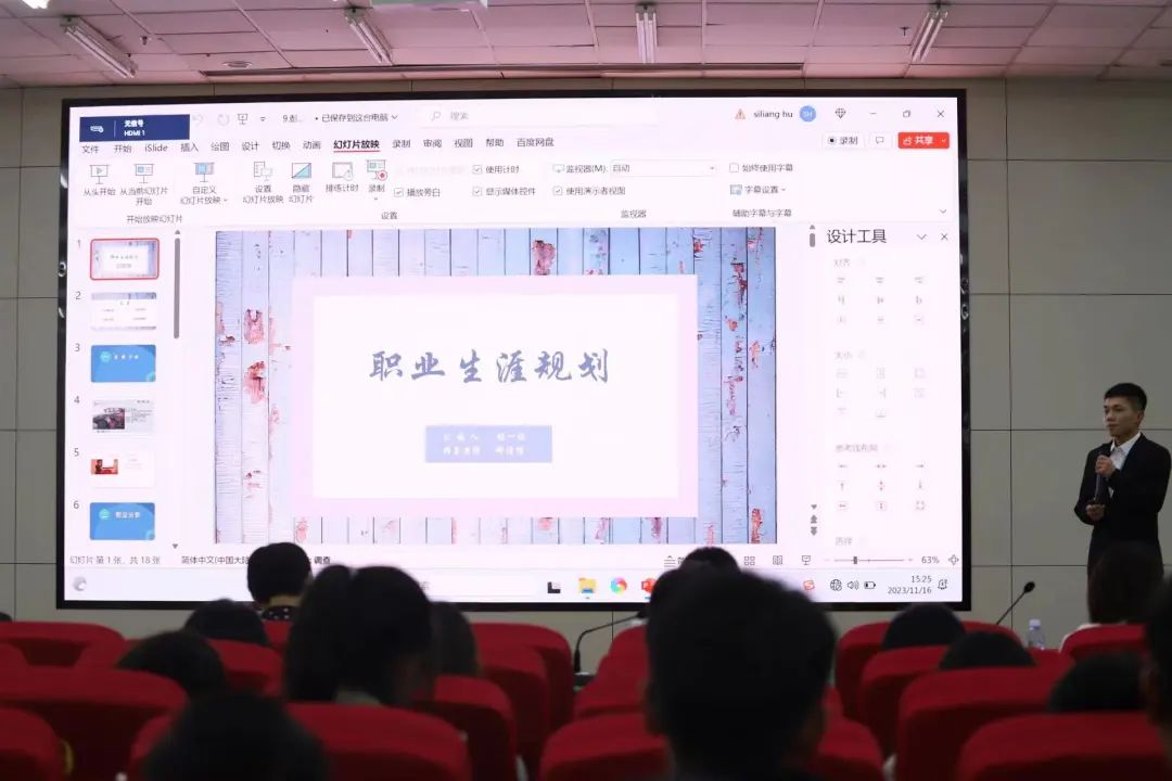 大赛分为成长赛道和就业赛道,分别设置主题陈述和评委提问两个环节。主题陈述环节,选手们结合自身兴趣和专业特点,对自我认识和外部环境进行了全面的分析,提出了自己的职业目标、发展路径和行动规划,并从可操作性和现实意义等方面进行了细致阐述。评委提问环节,选手们沉着冷静,反应迅速,思路清晰。