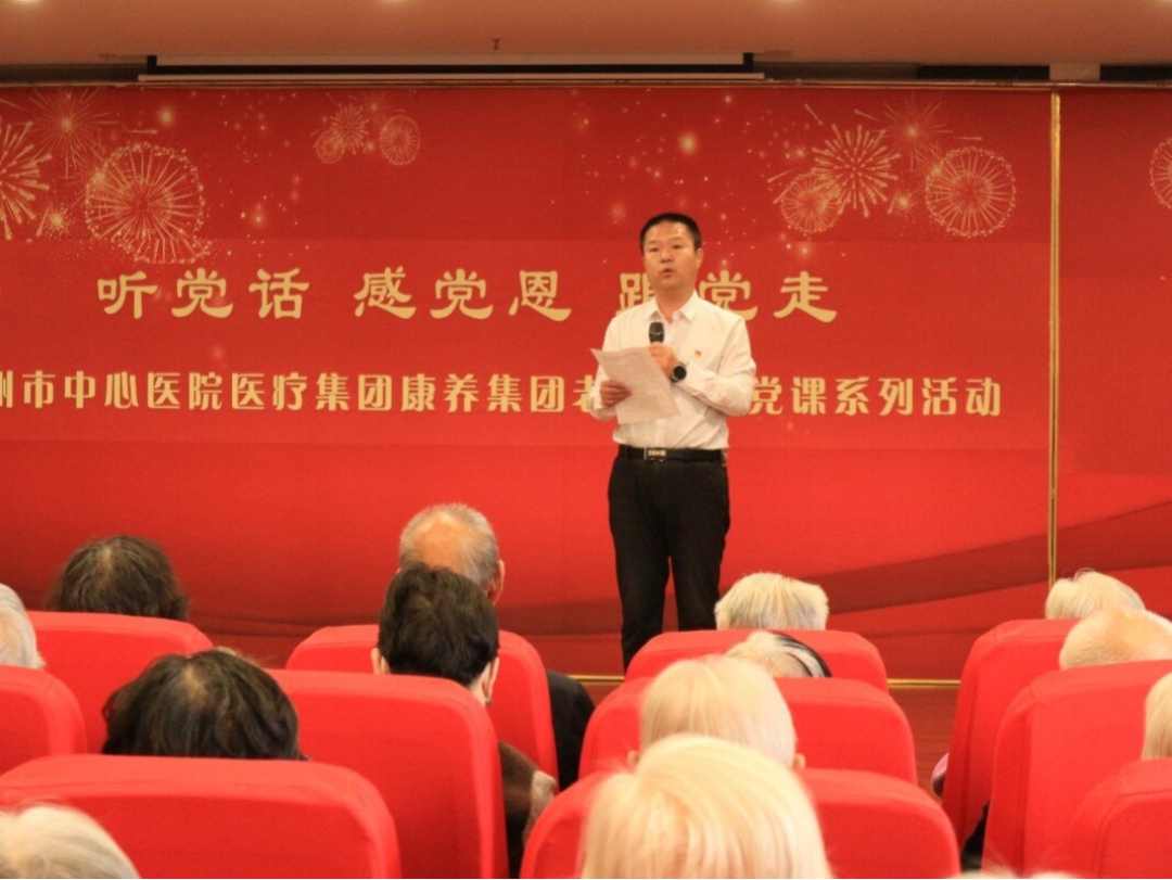 沧州市中心医院医疗集团康养集团董事长温秀玲在致辞中表示,康养集团“红色星期一”老党员讲党课活动目前已举办了十四期,彰显了老党员对党的热爱和忠诚,激发了老党员发挥余热的初心和情怀。希望同学们和全体干部职工能够认真聆听党课、深学悟透,将老党员退休不褪色、离岗不离党的精神转花为学习和工作的动力。