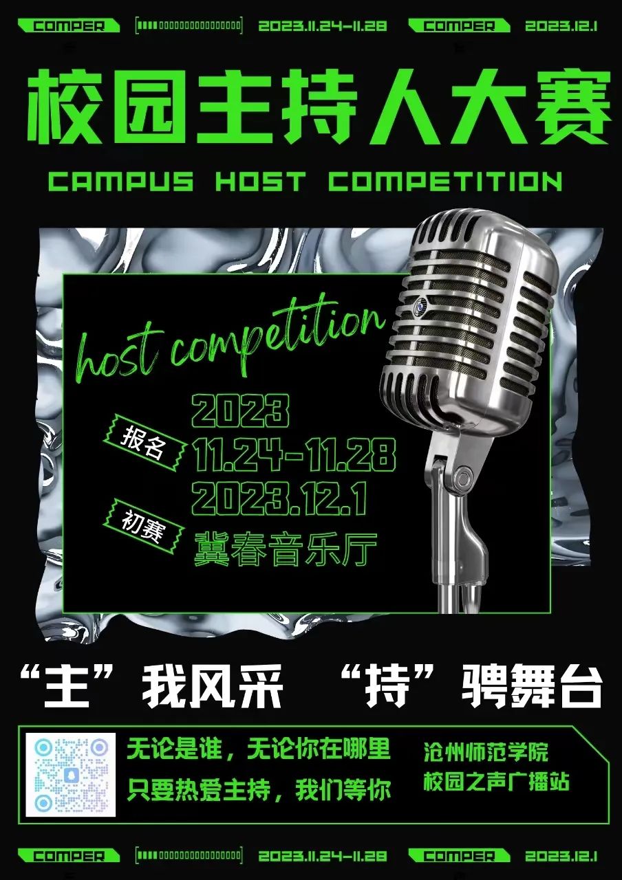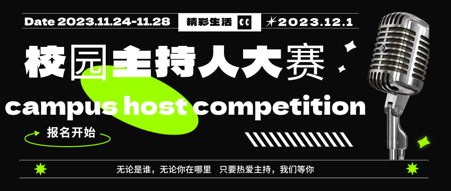 用一支话筒挥斥方遒,让热爱绽放,让梦想从这里启航,用每一次的奋斗来证明我们的拼搏无悔,让每一个舞台都能见证梦想的光芒,不改初衷,为梦发声。从容大气,话语流畅,抑扬顿挫里尽显功底。舞台已就绪,我们期待你的身影;在灿烂星火里,留下风采的限定记忆。展示自己的声音,亮出自己的台风,校园主持人大赛,期待大家的参与!