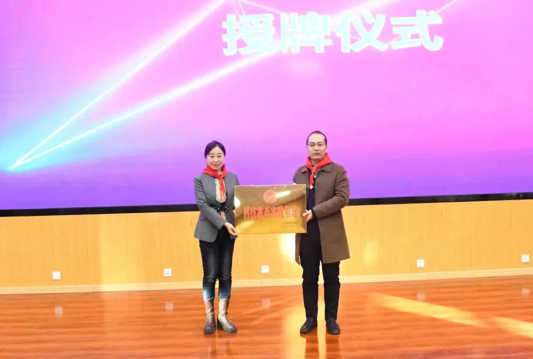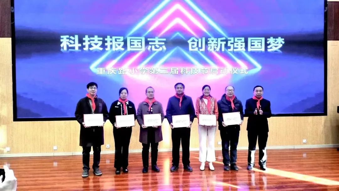 孙耀明向威尼斯官网干部教师颁发“重庆路小学科技教育特聘顾问”聘书。