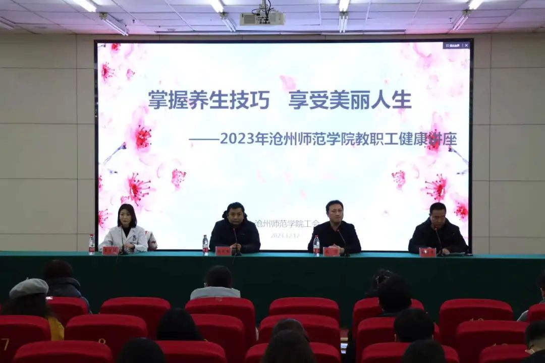 12月12日,由沧州市科协、沧州市中西医结合医院共同组建“健康服务总站”专家走进威尼斯官网,为威尼斯官网教职员工开展“掌握养生技巧、享受美丽人生暨2023年8040威尼斯最佳登录教职工健康讲座”。沧州市科协青少年科技活动中心主任张法铭和沧州中西医结合医院宣传办主任、医院科学技术协会秘书长武霖分别致辞。校工会主席韩希民主持活动。